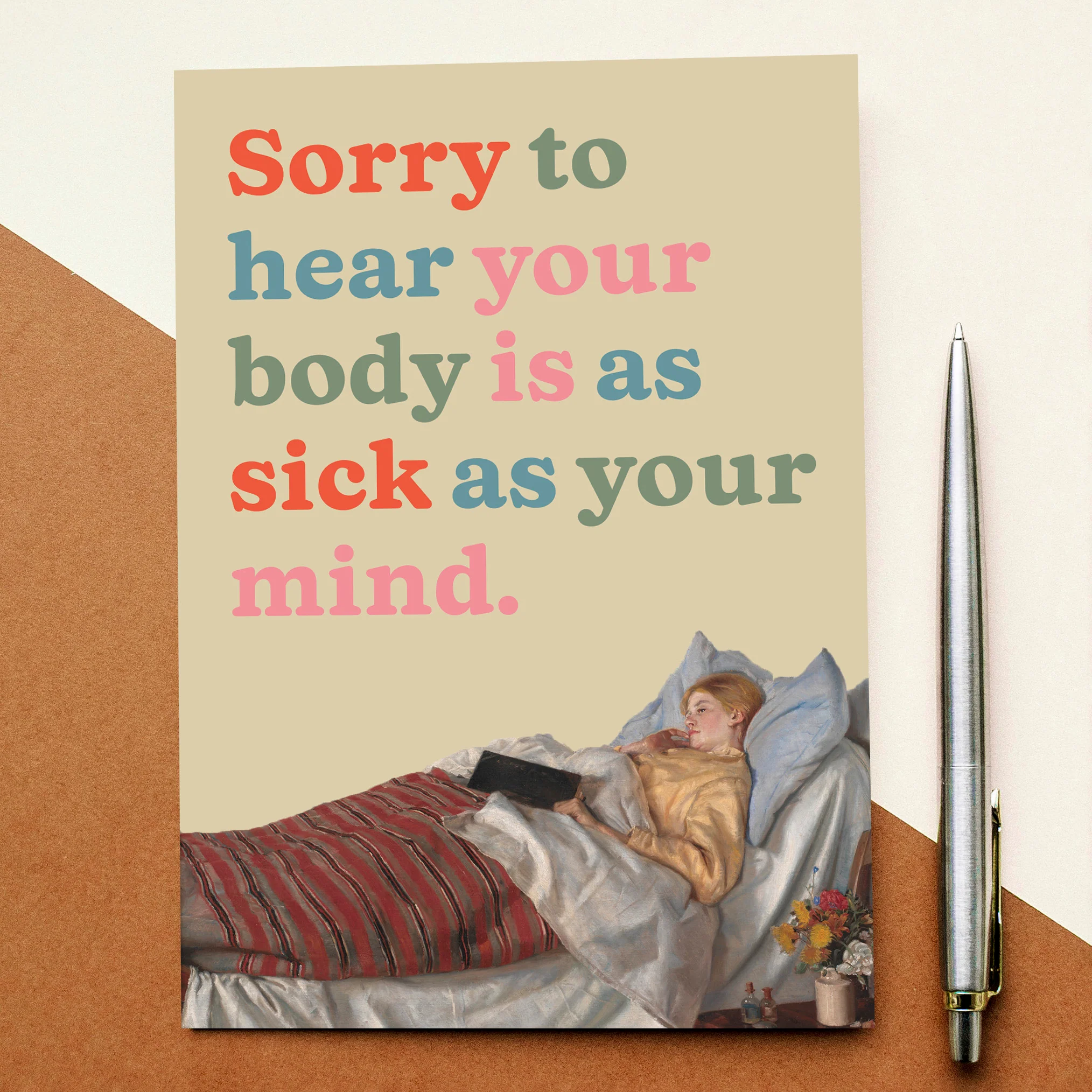 "Sorry to hear your body is as sick as your mind" get well soon card