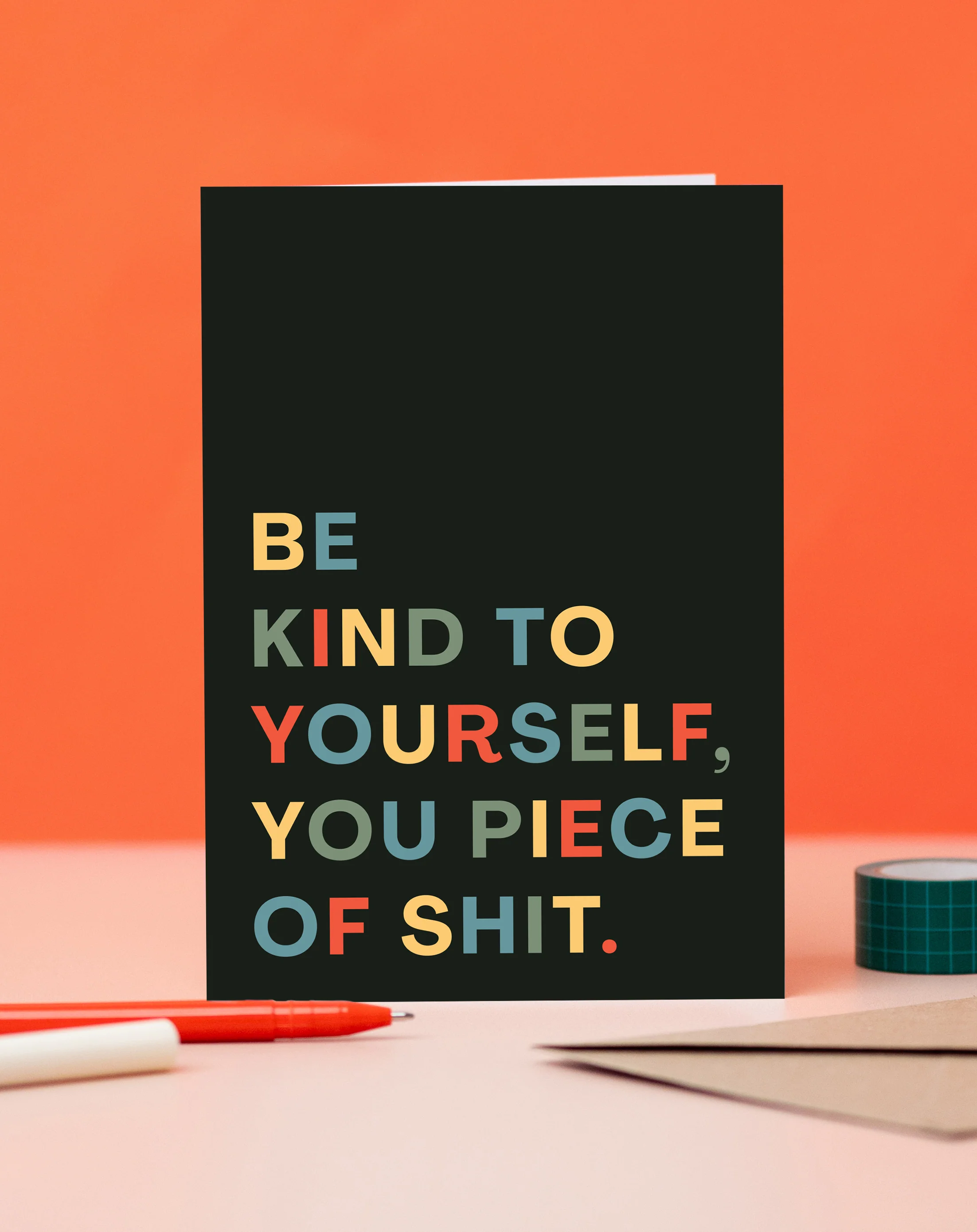 "Be kind to yourself, you piece of shit" greeting card