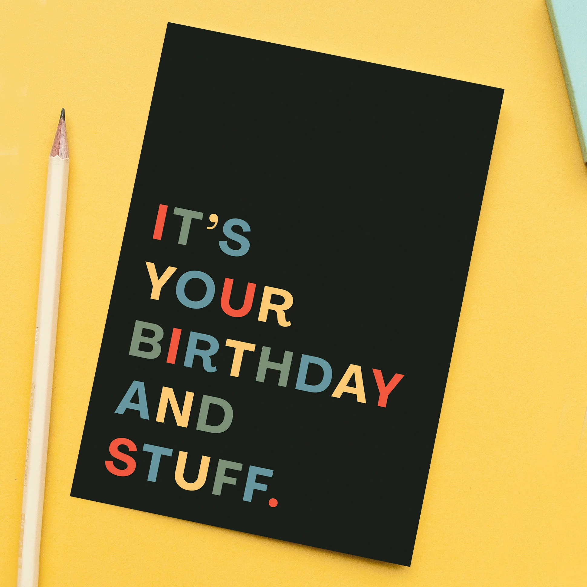 "It's your birthday and stuff" birthday card