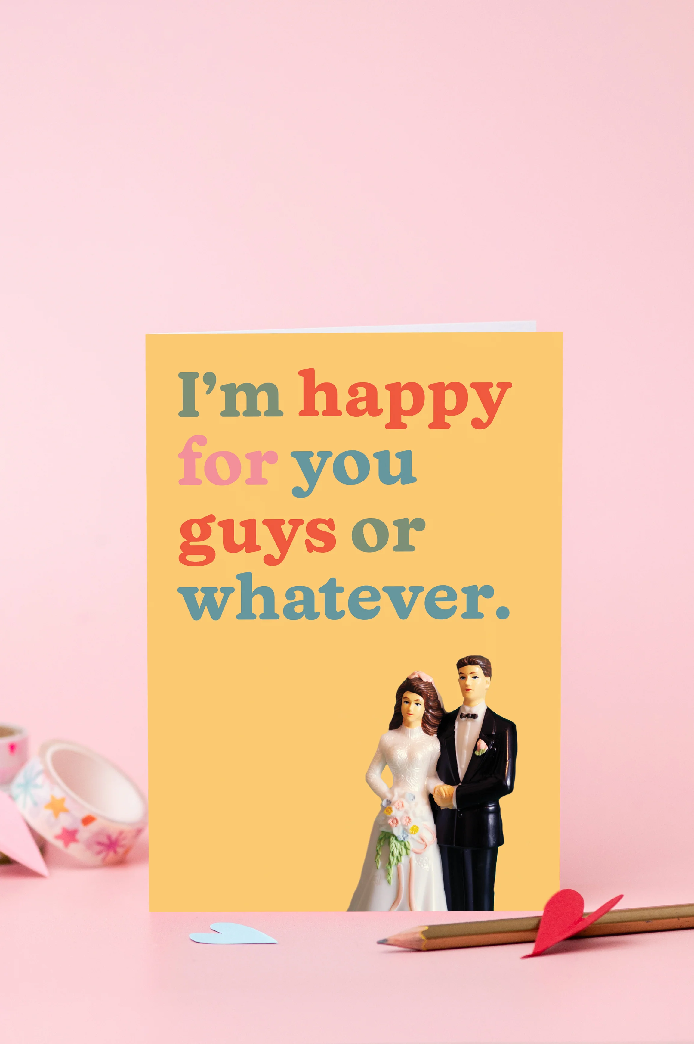 "I'm happy for you guys or whatever." wedding/engagement card