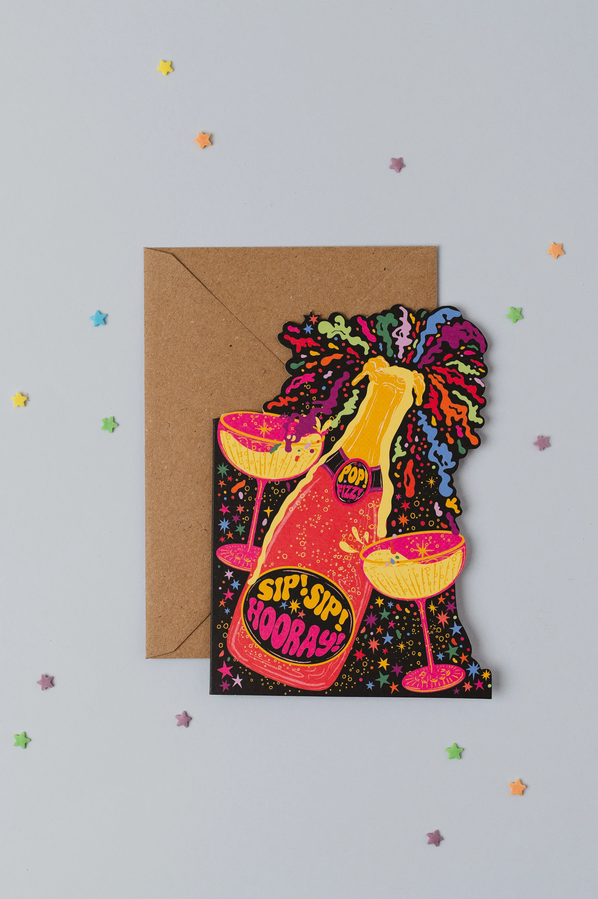 āSip Sip Hoorayā ā Funky Cut Out Congratulations Card from Lost Plots